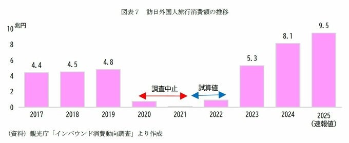 一方、消費額については、中国以外の国からの消費増により2026年全体では2025年をわずかに上回る水準を維持する見込みである。ただし、中国の減少傾向がさらに加速した場合には、消費額も下振れするリスクがある。