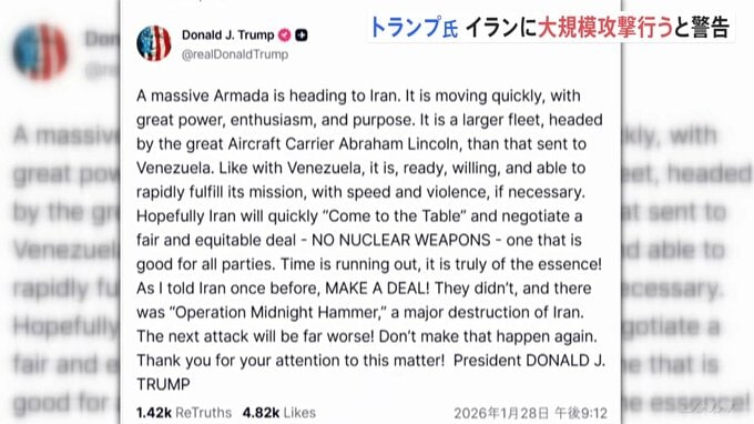 アメリカのトランプ大統領はイランへの大規模攻撃の可能性を示し、核開発問題の解決に向けた交渉に応じるよう迫りました。イラン側は「いかなる侵略にも強力に対応する準備ができている」などと、けん制しています…