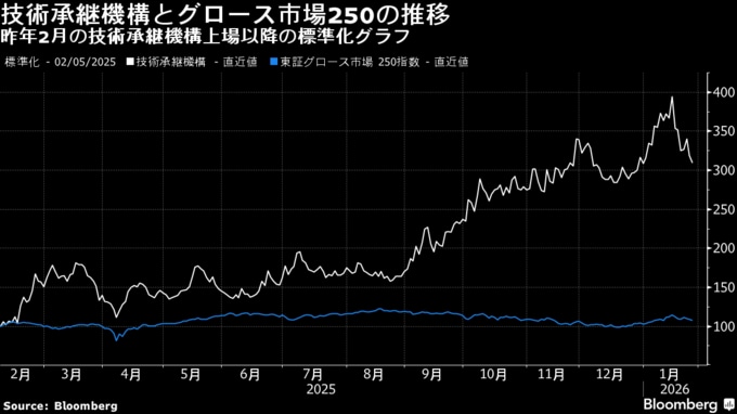 (ブルームバーグ):東京証券取引所へ昨年2月に上場した技術承継機構の株価はおよそ1年で3倍となり、2025年に新規株式公開(IPO)銘柄で上昇率トップだ。後継者不足に悩む製造業を買収し、企業価値の増大を目指す戦略が評価されている。