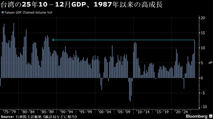 原題:Taiwan Economy Grows at Fastest Quarterly Pace Since 1987 on AI(抜粋)