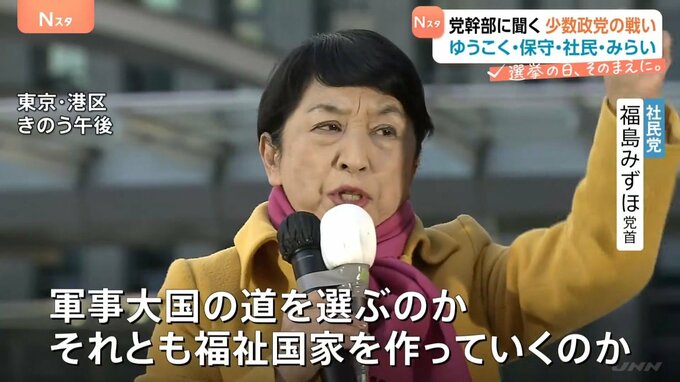 今回も平和主義やジェンダー平等などリベラル政党として政策を訴える社民党の福島党首。そんな社民党、国政選挙のたびに「崖っぷち」と言われる状況は変わっていません。