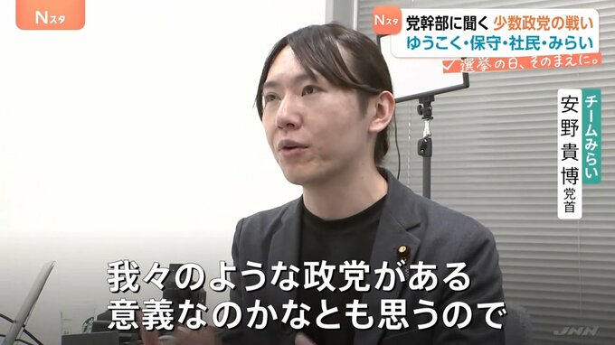一方、国政で“新たな風”を吹かせられるのか試されるのが、AIエンジニアの安野党首率いるチームみらいです。
