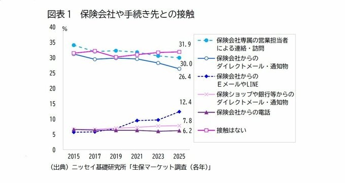 これに対し、「保険会社からのEメールやLINE」は上昇傾向にあり、接触手段のデジタル化が進んでいることがうかがえる。