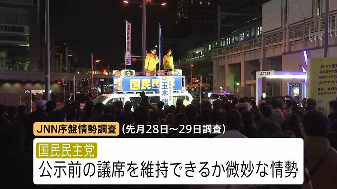 ただ、JNNの情勢調査では、国民民主党は公示前の議席を維持できるか微妙な情勢で、去年の参院選ほどの勢いはありません。