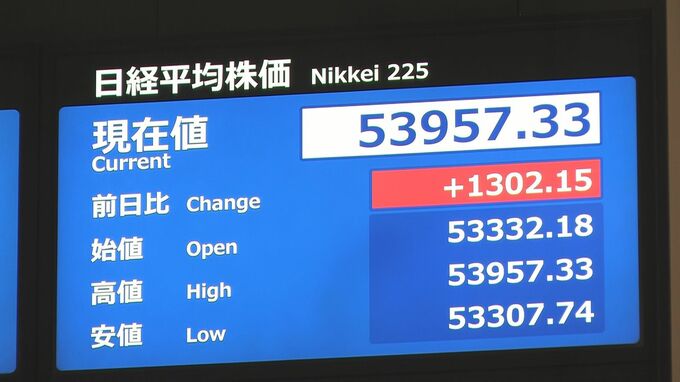 きょうの東京株式市場で日経平均株価は一時、1300円以上値上がりしました。きのう、アメリカで発表された経済指標が市場予想を上回ったことで、ニューヨーク市場で主要な株価指数が上昇。東京市場でもその流れを受…
