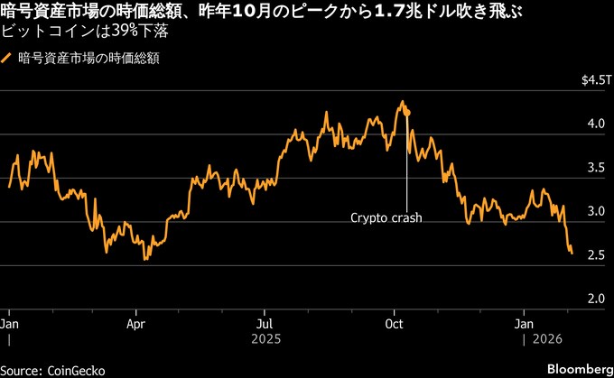 原題:Bitcoin-Led Crypto Rout Erases Nearly Half a Trillion in a Week(抜粋)