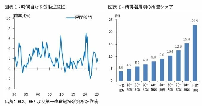 米国における足下の強いGDPを牽引するのは、AI関連投資と富裕層消費の二つだ。