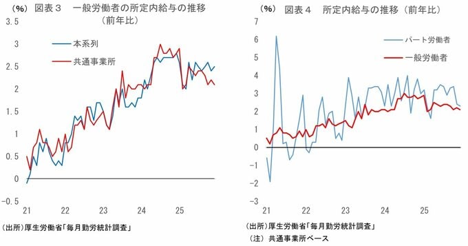 また、26年春闘では25年並みの高い伸びが実現するとの見方が強まっており、26年度の名目賃金も前年比で+2%台前半程度の伸びは期待できそうだ。
