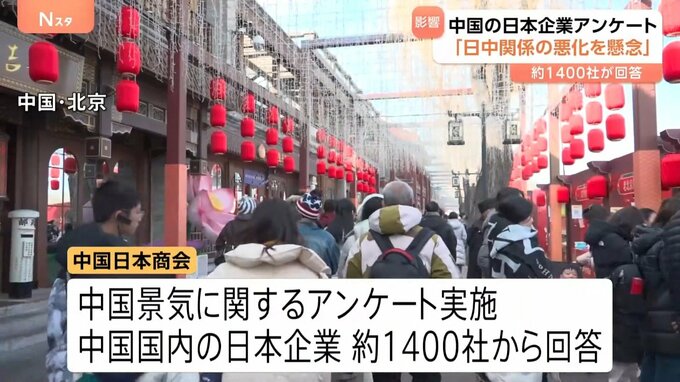 中国で活動する日本企業に対するアンケートで、中国政府による輸出規制の強化で影響が出ているなど日中関係悪化を懸念する声が相次いで寄せられました。