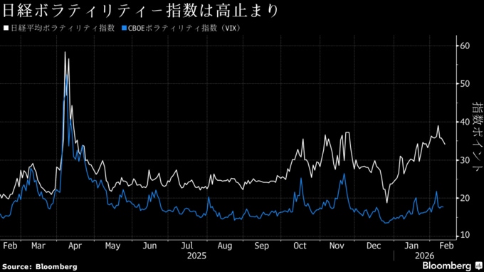 - 日本株は「晴天なれど波高し」、オプション市場が示唆-鍵は債券安定