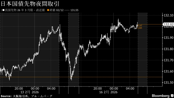 先物夜間取引で中心限月3月物は13日の日中取引終値比22銭高の132円02銭で終えた。鶴田氏の先物の予想レンジは131円80銭-132円10銭、新発10年債利回りは2.18-2.21%(13日は2.21%で終了)。13日の米10年国債利回りは前日比5ベーシスポイント(bp、1bp=0.01%)低い4.05%程度で引けた。