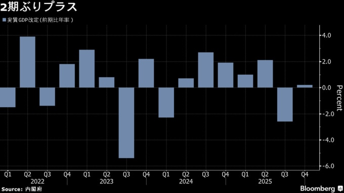 (ブルームバーグ):日本経済は昨年10-12月期は2期ぶりのプラス成長となった。個人消費や設備投資の増加に加え、住宅投資の反動増が寄与した。一方、輸出や公共投資は減少し、市場予想を下回る伸びにとどまった。