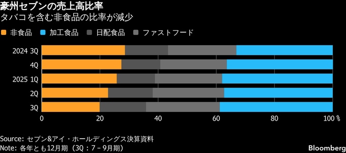 (ブルームバーグ):セブン&アイ・ホールディングスにとって豪州コンビニ市場がグローバル戦略の成否を占う試金石となっている。日本で培った運営手法を海外で展開し、収益構造の転換と事業拡大を図る。
