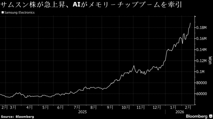 AIを巡る事業の混乱に関する懸念が和らぎ、業界で前向きな動きが出ていることも追い風となっている。サムスンの顧客であるエヌビディアの株価も18日の米国株式市場で上昇。米メタ・プラットフォームズがエヌビディアのプロセッサーを今後数年間で「数百万個」導入することで合意したことを受けた。