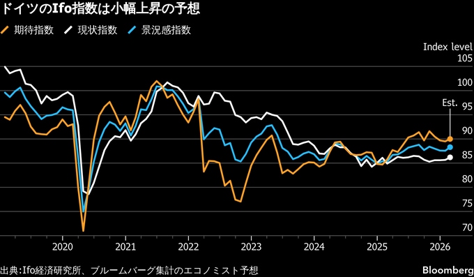 23日発表のIfoの期待指数および現状指数は、小幅上昇が予想されている。S&Pグローバルが先週発表したドイツの製造業購買担当者指数(PMI)は50を上回り、2022年以来となる活動拡大を示した。