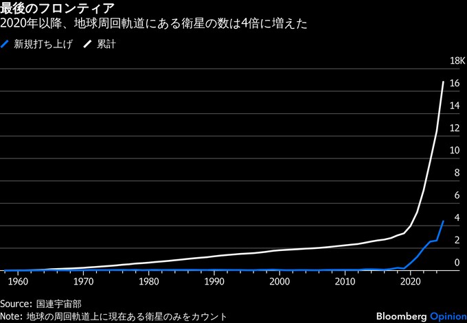 こうした動きは中国に限らない。23年のある研究では、各国政府が過去数年で合計100万基の衛星打ち上げを提案していたことが示された。
