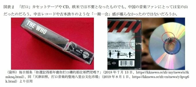 山本(2024)等によれば、1978年の改革開放後には国営ラジオや外国人留学生等、1990年代にはプラスチックの加工原料として欧米から輸入された廃棄カセットテープやCD(に穴を開けたもので、「打口」と呼ばれる)、2000年代にパソコンやインターネットの普及が進んでからは違法MP3ファイルと、媒体を変えながら欧米等の音源が中国に広まり、中国人の耳が肥えていった。