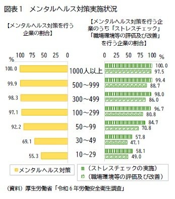 厚生労働省の「労働安全衛生調査」によると、メンタルヘルス対策を行う企業は、2024年時点で50人以上の企業では9割を超える。