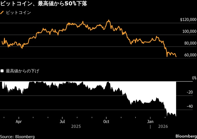 最高値を更新した昨年10月以降の約4カ月で約半値に沈んだビットコインにとって、これは核心的な問題だ。今回の売りは一度限りの急落劇ではない。10万ドル、9万ドル、8万ドルと下値をじりじりと切り下げる展開で、新たな買いの呼び水となってきた激しい売りは見られなかった。
