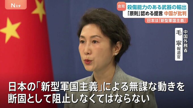 自民党が殺傷能力のある武器の輸出を「原則」認める提言をまとめたことについて、中国外務省の報道官は「日本の『新型軍国主義』による無謀な動きを断固として阻止しなくてはならない」と批判しました。現在、日本…