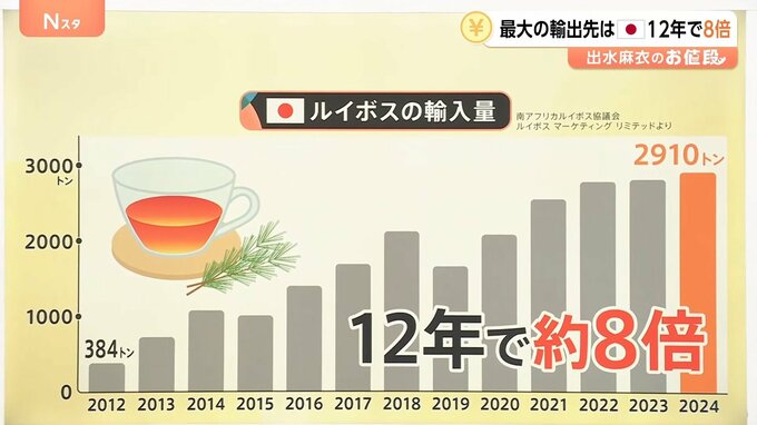 現在は南アフリカから多くの国に輸出されているルイボスですが、際立つのは「日本への輸出量」です。