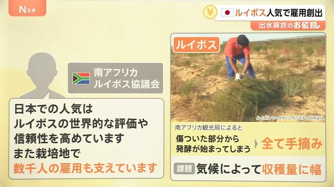 日本での人気について、現地・南アフリカのルイボス協議会によると「日本での人気はルイボスの世界的な評価や信頼性を高めています。また栽培地で数千人の雇用も支えています」ということです。