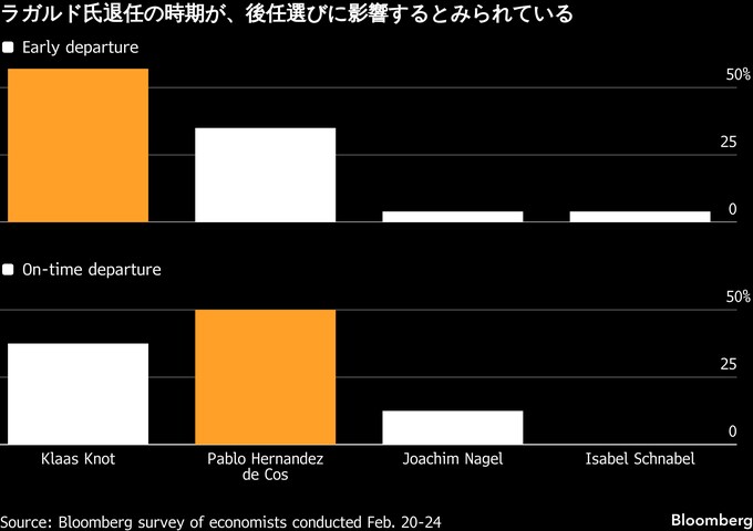 原題:Economists Say Lagarde Will Exit Early Handing ECB Job to Knot(抜粋)