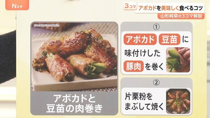 【アボカドと豆苗の肉巻き】