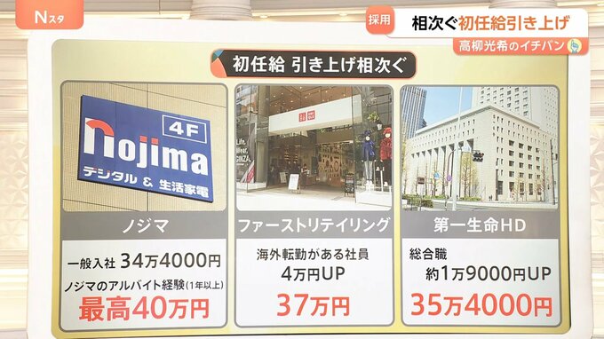 各企業で相次ぐ初任給引き上げ 「最高40万円」も