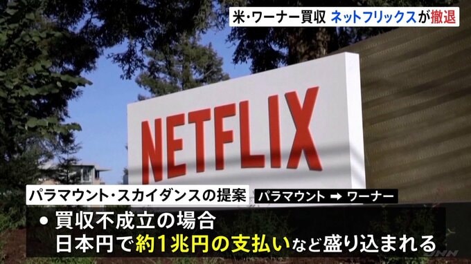 アメリカメディア大手ワーナー・ブラザース・ディスカバリーの買収をめぐり、ネットフリックスが撤退を表明しました。ワーナーをめぐっては、ネットフリックスが一度、買収で合意していましたが、ワーナーは26日、…