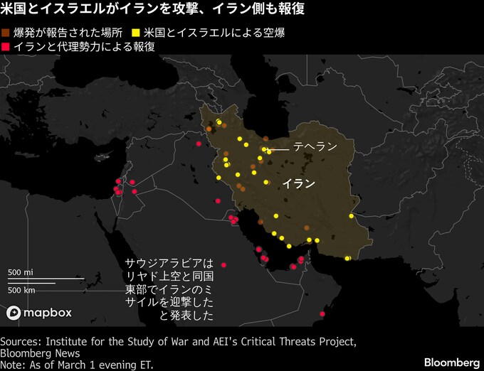 米国とイスラエルの攻撃で最高指導者ハメネイ師が殺害されたことを受け、イランは中東各地への攻撃を続けている。イスラエル、サウジアラビア、カタール、アラブ首長国連邦(UAE)で爆発音が聞かれた。
