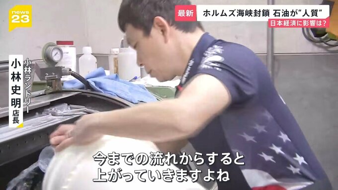 原油価格が高騰すれば、ほとんどの仕入れ値が上がってしまうと嘆くのは、クリーニング店の店主です。