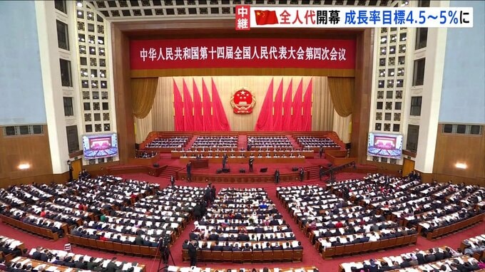 中国では全人代=全国人民代表大会が開幕し、今年の経済成長率の目標はプラス4.5%から5%に去年から引き下げられました。北京から中継です。こちらの人民大会堂では先ほど、李強首相が政府活動報告を読み上げ、今…