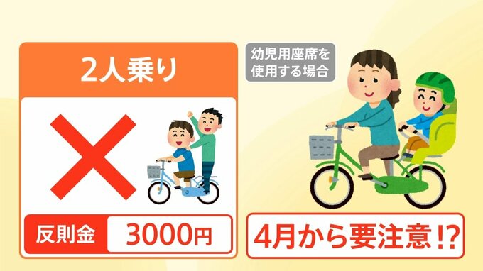 幼児用座席を使用する2人乗りは一定のルールで認められていますが、4月からは注意が必要です。