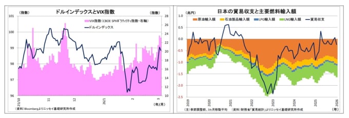 実際、今回の武力衝突発生後は、米株式市場の警戒感を示すVIX指数の上昇と歩調を合わせる形で、ドルの総合的な強さを示すドルインデックスも上昇している。