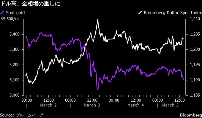 ロシアによるウクライナ侵攻後にも同様の動きが見られた。当時はエネルギー価格が急騰し、金利見通しやドルも上昇、その後数カ月にわたり金は下落した。2022年のこうした局面を参考にするトレーダーもいる。