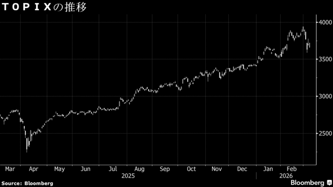 第1週の東証株価指数(TOPIX)は5.6%安と、トランプ米大統領が大規模な関税を発表した2025年4月以来の大きな下げとなった。米国とイスラエルによるイラン攻撃を受けて投資家のリスク回避姿勢が強まり、世界の株式相場はアジアを中心に下落した。