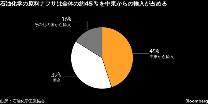 (ブルームバーグ):中東の混乱に伴う石油化学製品の原料であるナフサ不足に備えて、企業が対応を始めた。日本が輸入の大部分を依存する中東からの供給支障が長期化すれば、川下の自動車などの幅広い産業に影響を与える恐れがある。