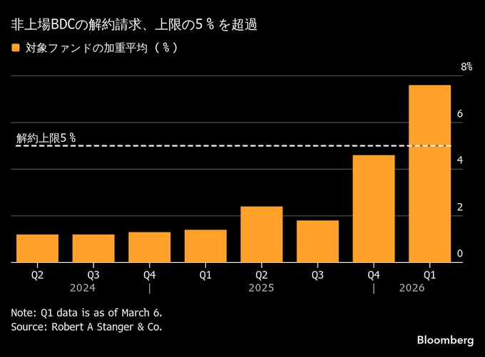世界最大のオルタナティブ資産運用会社ブラックストーン・グループの主力プライベートクレジットファンドは今年、多額の解約請求に直面。対応策として運用担当者らが約1億5000万ドルの自己資金を拠出した。ブラックロックも顧客からの解約請求が急増したことを受け、プライベートクレジット・ファンドの一つで解約を制限し、業界に衝撃を与えた。