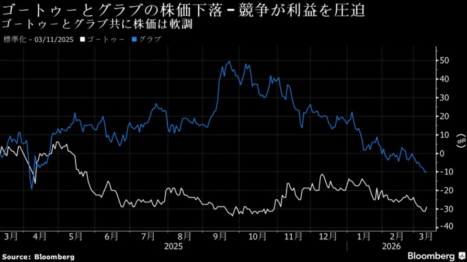 ゴートゥー株は過去12カ月で約30%下落。グラブによる買収を巡る長期にわたる協議は、いまだ具体的な成果を生んでいない。