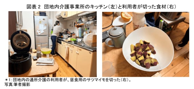 外食だけではなく、利用者が食べたいものを共に調理することも多い。認知症であっても、料理の知識や技術は維持している人が少なくない。スタッフが「この食材で何か作れますか?」と依頼すると、認知症の高齢者が腕を振るってくれることがある。