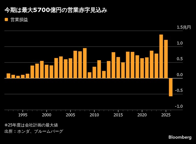 (ブルームバーグ):ホンダは12日、四輪の電動化戦略の見直しに伴って損失が発生し、今期(2026年3月期)の利益見通しを下方修正すると発表した。来期以降も追加損失が発生し、今期分とあわせて最大で2兆5000億円にのぼる可能性も示した。