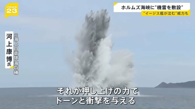 「沈底機雷は自分が爆発する以外に、バブルという大きな気泡ができる。それが押し上げの力でドーンと衝撃を与える。”ジェット気流”として衝撃を与えるので、10万トンタンカーも沈めることができるし、日本のイージス艦も沈めることができます。」