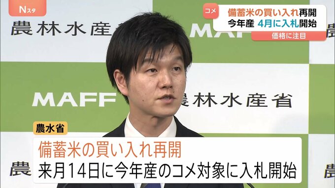 鈴木農水大臣は今年産のコメを対象とした備蓄米の買い入れについて、来月、入札を始めると明らかにしました。鈴木憲和 農水大臣「(令和)8年産の供給量は十分な水準にあるとのデータが得られた」農水省は取りや…