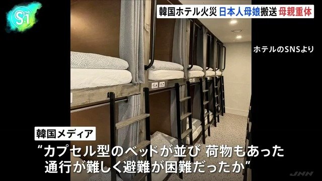 韓国メディアは、ホテルにはカプセル型のベッドが並び荷物もあったことから、通行が難しく避難が困難だった可能性があると伝えています。