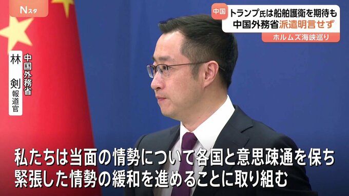 アメリカのトランプ大統領が中国に対しホルムズ海峡での船舶護衛に期待感を示したことについて、中国外務省の報道官は艦船を派遣するかどうか明言しませんでした。トランプ大統領は日本や中国などに対し、ホルムズ…