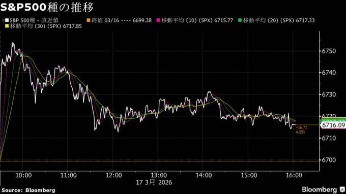 (ブルームバーグ):17日の米金融市場では株式相場が慎重ムードながらも続伸。原油価格は高止まりしているものの、株式への底堅い需要と堅調な業績見通しへの期待が相場を下支えしているとの指摘が聞かれた。