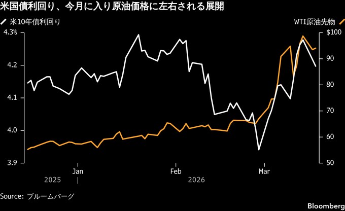 ただ原油価格は高止まりしており、2月28日に米国がイランを攻撃し中東からの輸出が混乱する前の水準を上回っている。これが経済成長を圧迫しかねないとの見方も債券の買いにつながっている。