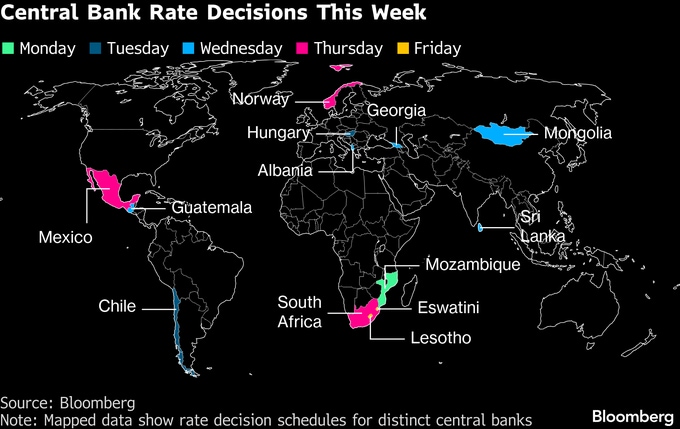 日本、豪州、英国のインフレ統計、中国の工業利益、ノルウェーやメキシコの金融政策決定なども投資家の注目を集める見通しだ。