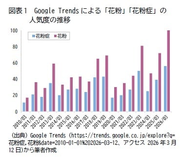 今年も花粉飛散量は多いようだ。Google Trendsによると、年ごとの変動はあるものの、「花粉症」や「花粉」への関心は長期的に高まっている様子がうかがえる。